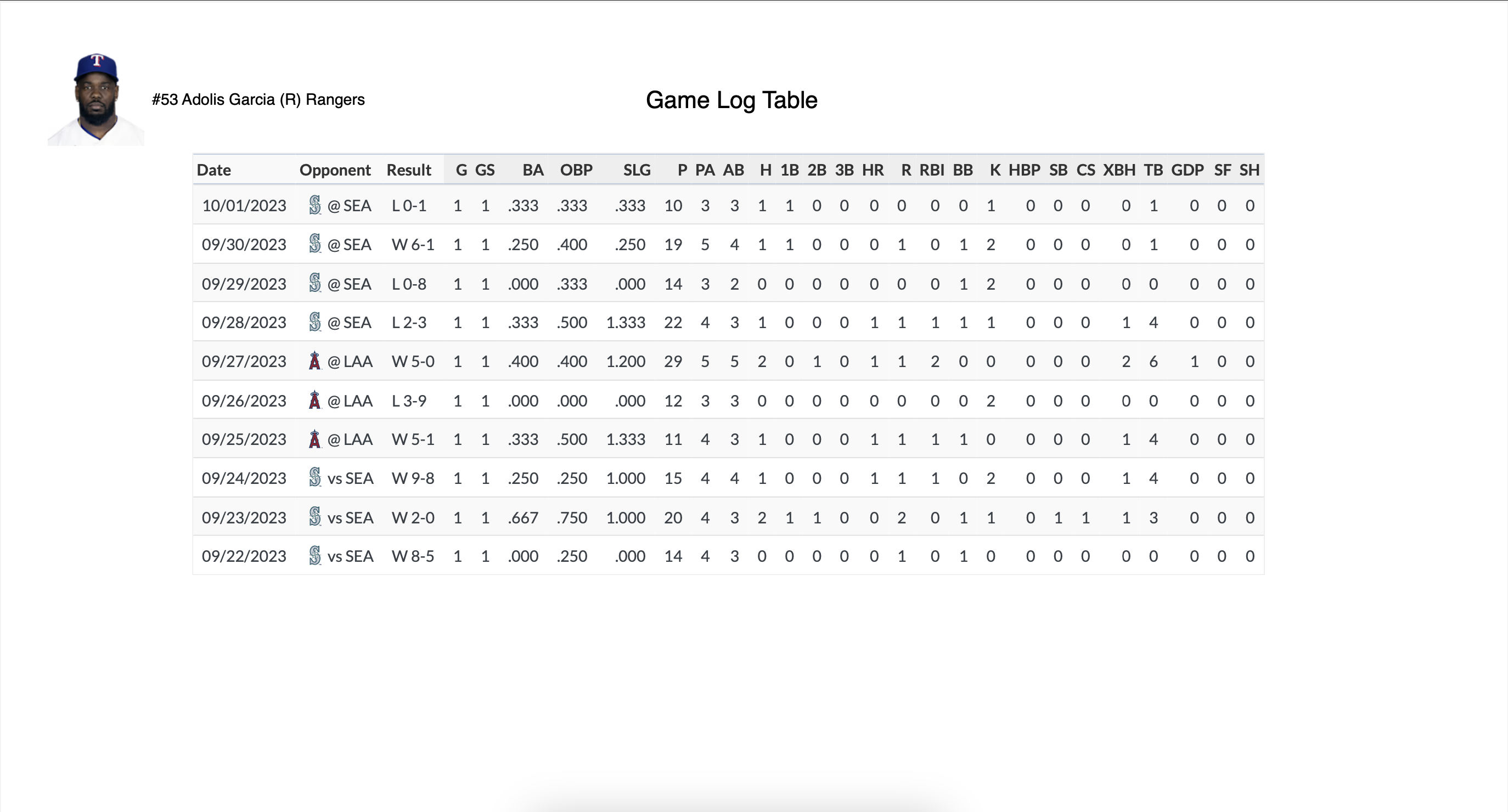 Game Log Table