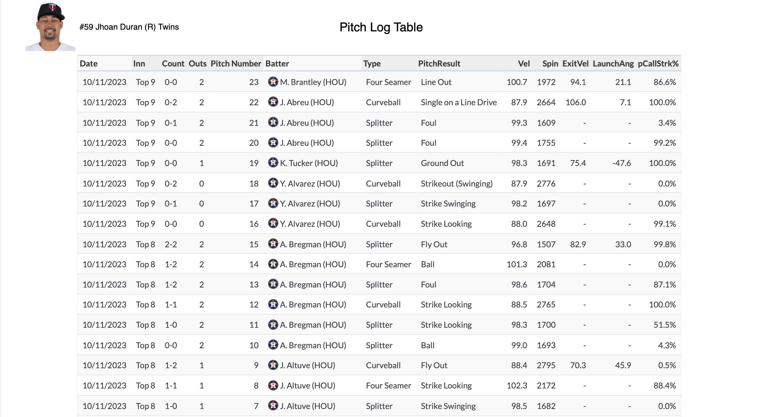 Pitch Log Table
