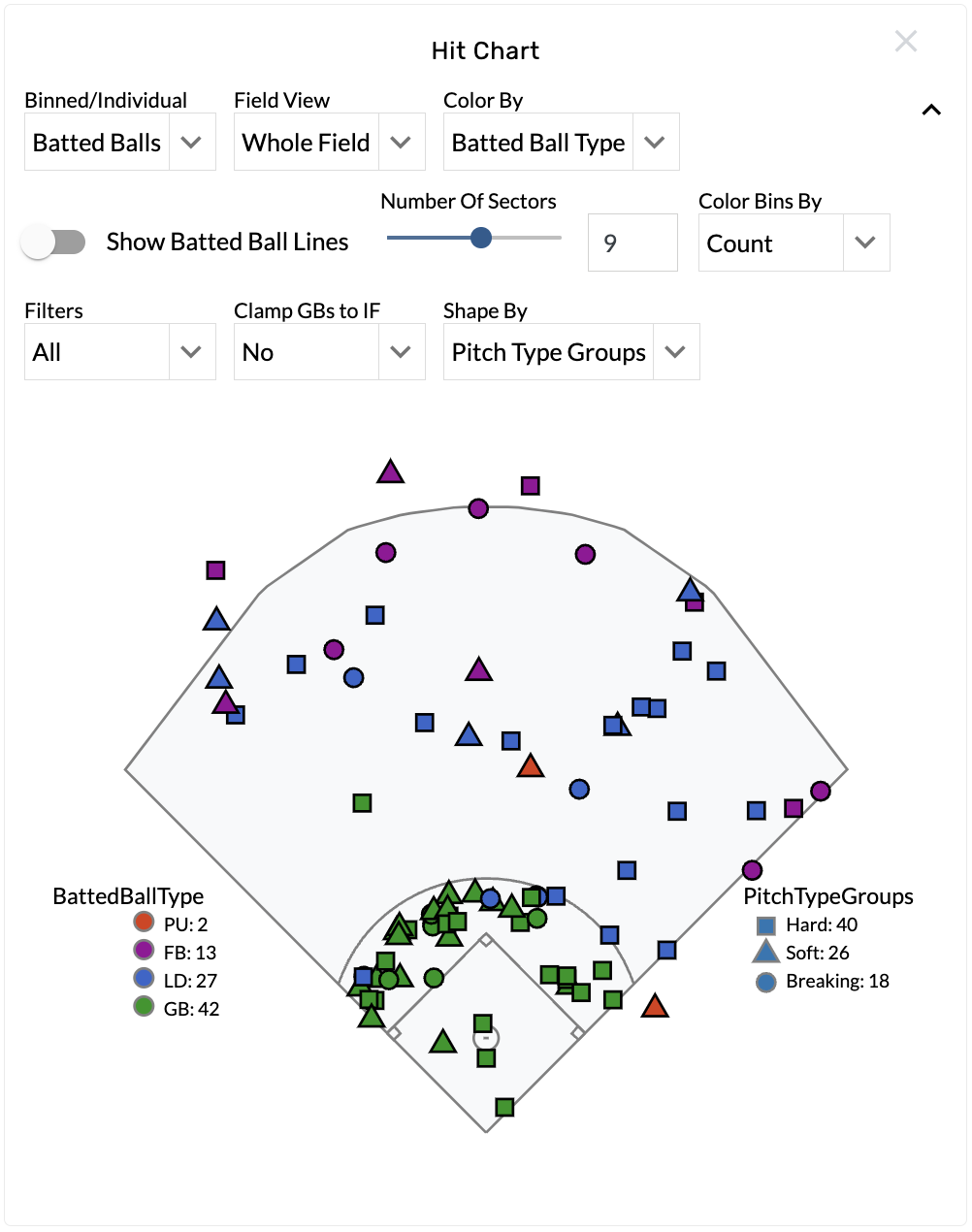"In Catcher Group", "In Infield Group", "In Outfield Group" filters added